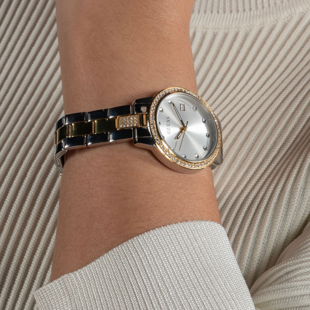 M ετά από τόσα χρόνια πρωτοπορίας, πλέον όλοι γνωρίζουν ότι η GUESS είναι ικανή να συνδυάσει άψογα την άνεση, το στυλ και τη γοητεία προσδίδοντας υψηλή αισθητική στα ρολόγια της.Δεν είναι τυχαίο, λοιπόν, που υποστηρίζουμε ότι στο κόσμο του ρολογιού, σε όλες τις γλώσσες, σε όλες τις χώρες, η λέξη κομψότητα σημαίνει GUESS!