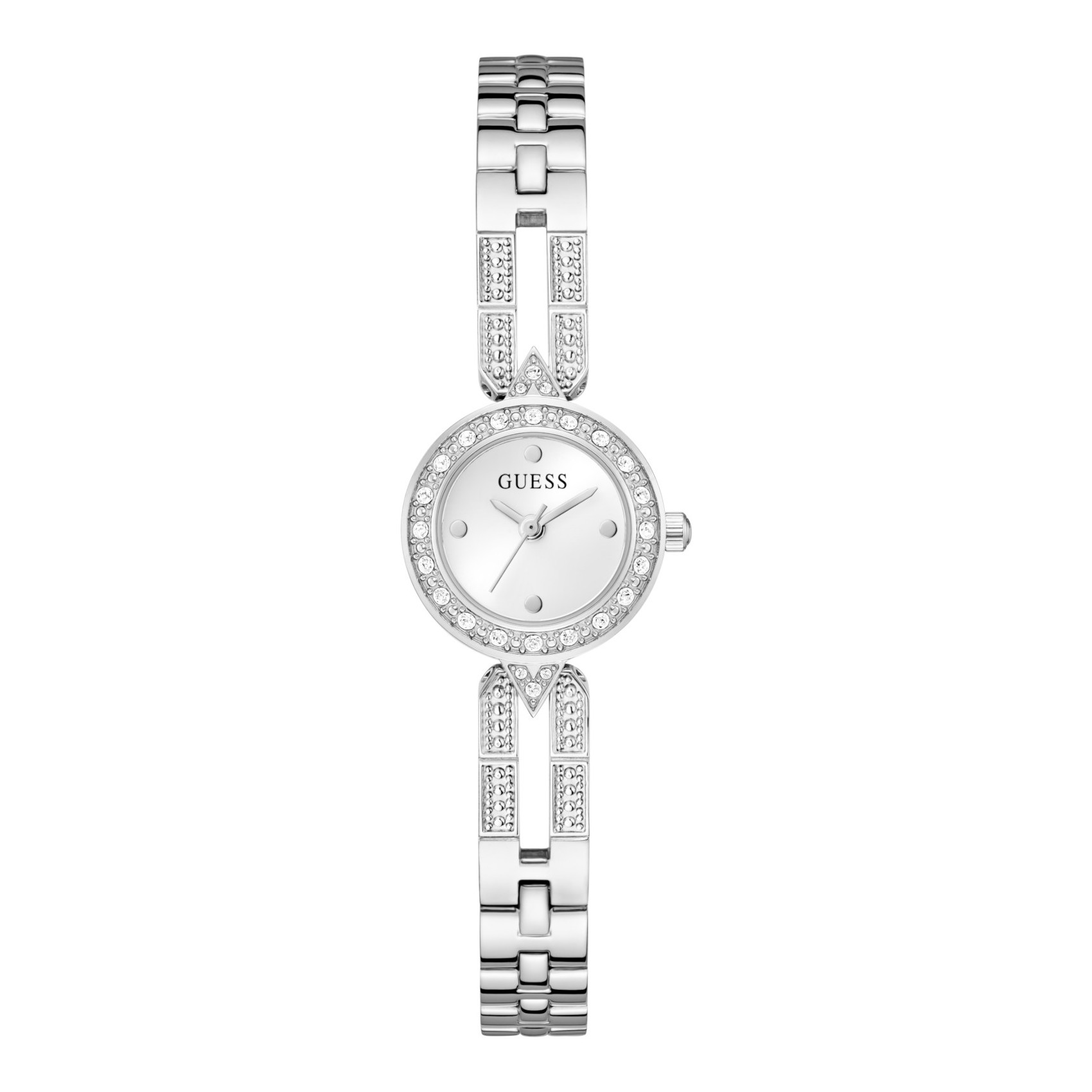 M ετά από τόσα χρόνια πρωτοπορίας, πλέον όλοι γνωρίζουν ότι η GUESS είναι ικανή να συνδυάσει άψογα την άνεση, το στυλ και τη γοητεία προσδίδοντας υψηλή αισθητική στα ρολόγια της.Δεν είναι τυχαίο, λοιπόν, που υποστηρίζουμε ότι στο κόσμο του ρολογιού, σε όλες τις γλώσσες, σε όλες τις χώρες, η λέξη κομψότητα σημαίνει GUESS!