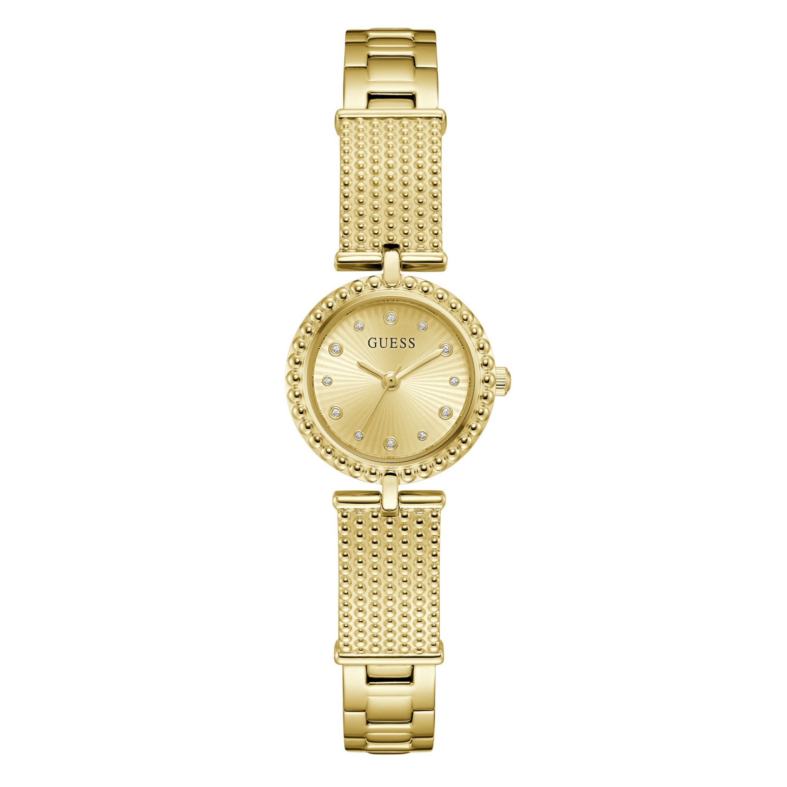 M ετά από τόσα χρόνια πρωτοπορίας, πλέον όλοι γνωρίζουν ότι η GUESS είναι ικανή να συνδυάσει άψογα την άνεση, το στυλ και τη γοητεία προσδίδοντας υψηλή αισθητική στα ρολόγια της.Δεν είναι τυχαίο, λοιπόν, που υποστηρίζουμε ότι στο κόσμο του ρολογιού, σε όλες τις γλώσσες, σε όλες τις χώρες, η λέξη κομψότητα σημαίνει GUESS!